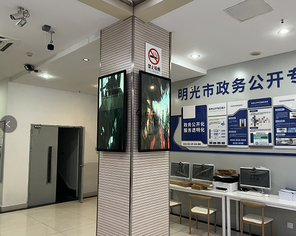 迅博明一批觸摸查詢機、壁掛廣告機和液晶拼接屏應用于明光市政務中心和張八嶺鎮政府